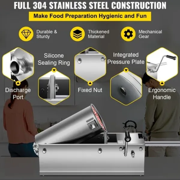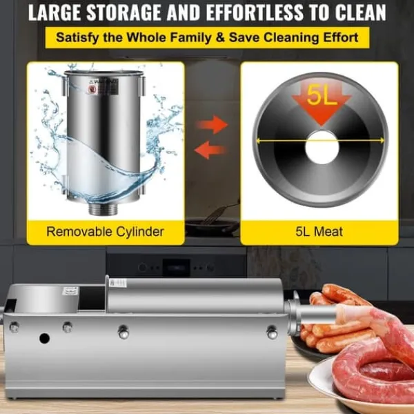 chorizo-fyllaren är tillverkad av robust och långvarig rostfritt stål. Den är enkel att använda för att fylla korv, vilket ger dig möjlighet att experimentera med olika smaker och skapa variation. Dess mångsidighet gör den lämplig för både hemmabruk och kommersiella kök, vilket gör den till en oumbärlig köksapparat.