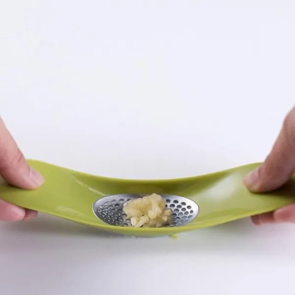 Upptäck JOSEPH JOSEPH:s vitlökspress Garlic Rocker, tillverkad i stål. Med måtten 18,5 x 3 x 4 cm är den lätt att skölja med vatten. Ett praktiskt verktyg för att krossa vitlök snabbt och effektivt.
