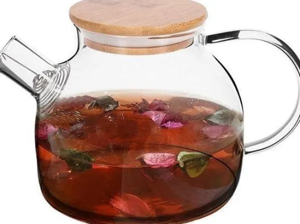 Excellent Houseware Glaskanna med sil för vatten te örter varma drycker med handtag lock 1 l