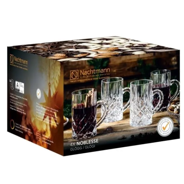 Noblesse Glögg Glas 25cl 4-pack av Nachtmann. Noblesse är en vacker och lyxig kristallserie från Nachtmann med traditionellt och elegant rutmönster. Glasen är stabila i handen och perfekta att avnjuta din favoritdrink med. I serien finns också skålar till snacks och en elegant Whiskykaraff.Nachtmanns fina glöggmugg i Noblesse är perfekt till julens alla tillfällen. De tidlösa mönstret med den eleganta formen på muggen gifter sig helt perfekt. Muggen är skapad för att kunna förbereda samt servera vamra drycker, upp till 100°C.