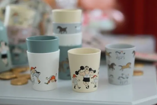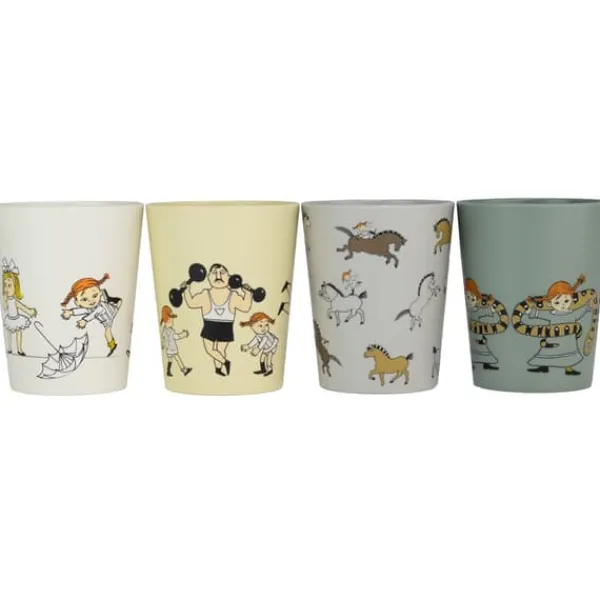 Fyra fina samlarmuggar med Pippi Långstrump-motiv, tillverkade i RPET vilket är ett miljövänligt och tåligt material. Rätt Starts produkter i RPET bidrar till minskat avfall och lägre koldioxidavtryck. RPET tål ej mikrovågsugn men går bra att diskas i maskin.