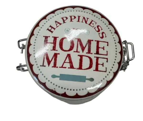 Traditionell glasburk med snäpplock i keramik med texten ”Happiness is Home Made”