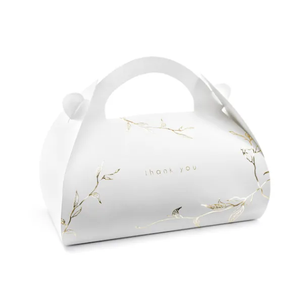Dekorativa kakaskar av vitt papper med ett guldfärgat metallic kvistmönster. Mått monterade: ca 16 x 8,5 x 9,5 cm.