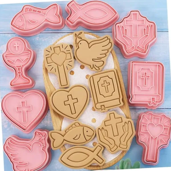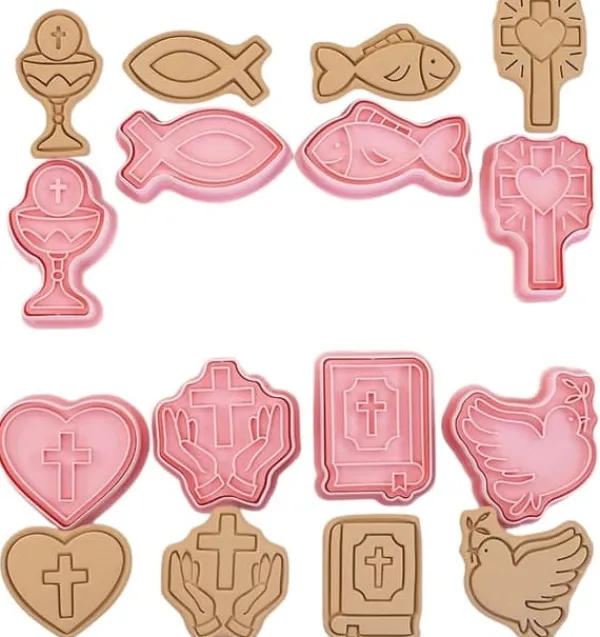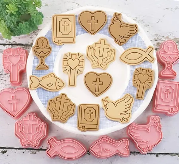 Vi presenterar ett set kakformar och sockerpastadekorationer med motivet Första heliga nattvarden. Setet innehåller formar i olika former, inklusive en kalk, en duva, en fisk, ett kors. Tillverkade av hållbar plast garanterar de tillförlitlighet och hållbarhet för många användningsområden. Varje form är cirka 6 cm stor, vilket möjliggör exakt utskärning av mönstret. Setet innehåller 8 formar, så att du kan skapa olika dekorationer med temat fordon. Var kreativ och dekorera dina bakverk på ett unikt sätt med detta professionella set med utstickare. Den perfekta lösningen för konfektyrentusiaster som vill ge sina bakverk en unik bild. Beställ idag!
