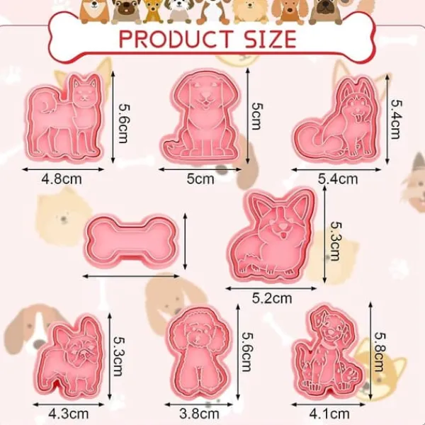 Formarna med stämplar är praktiska att använda och lätta att rengöra. Förpackade i blisterförpackning Beställ ett set med 8 kakformar med stämplar och lägg till lite kreativitet i ditt bakande. Uttryck din kärlek till hundar genom vackra kakor som inte bara är goda utan också överraskande söta.