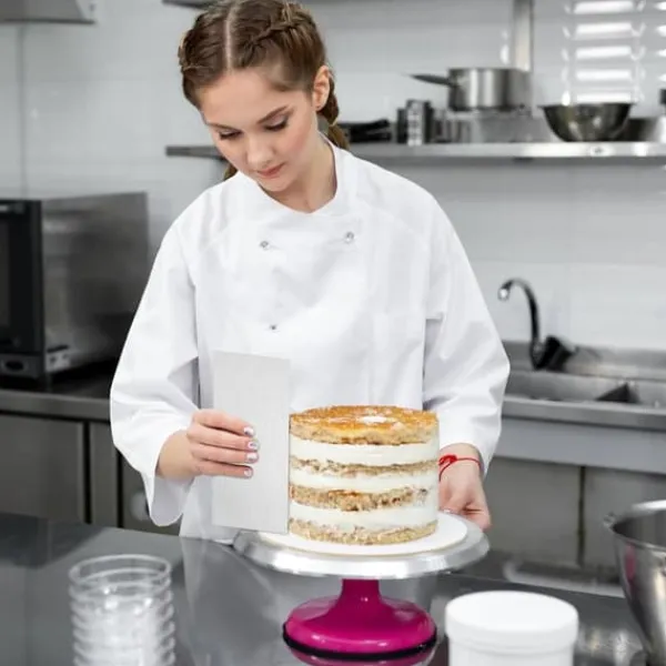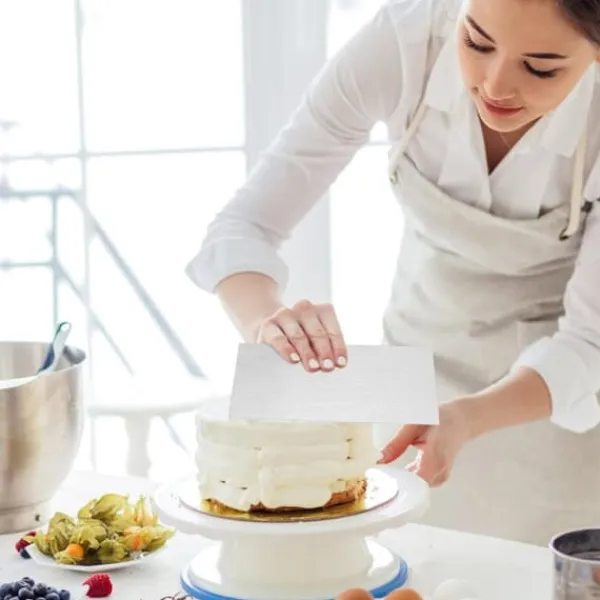 Produktbeskrivning: Denna kakjämnare är ett pålitligt verktyg för bakentusiaster som säkerställer en perfekt slät kakyta. Tack vare sin ergonomiska form kan du forma krämer, fondant och andra dekorationer exakt, vilket ger bakverk ett professionellt utseende.