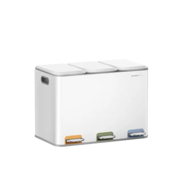 Mooistoerwonen HOME Kök Avfallsbehållare, 3 x 15 l fack, avfallsbehållare med färgade pedaler, avfallssorteringssystem, med lock och innerhinkar, stål, kolsvart V1. Färg: Molnvit. Material: stål, innerhink av PP-plast. Mått: 60,5 x 38,8 x 42,7 cm (L x B x H). Totalhöjd (med locket öppet): 73,3 cm. Mått per innerhink: 28,5 x 18 x 39,4 cm (L x B x H). Kapacitet: 45 l. Vikt: 6,8 kg.