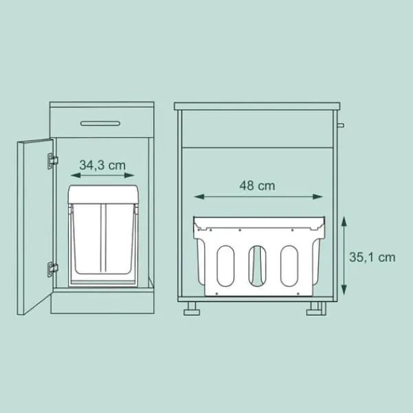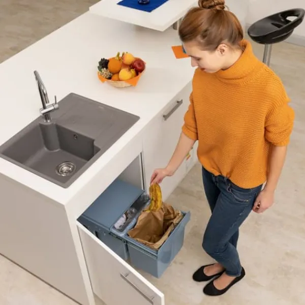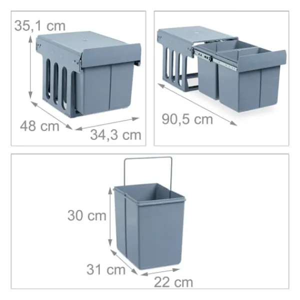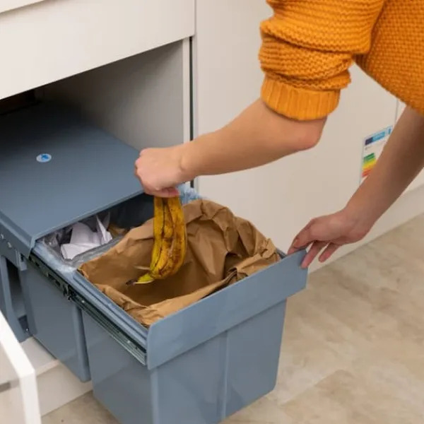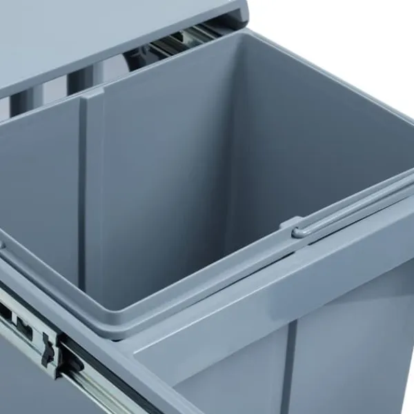 Håll ditt kök organiserat och sortera ditt avfall effektivt med detta inbyggda dubbla avfallssystem. Designat för enkel installation i skåp, har det två rymliga fack och ett lock som hjälper till att kontrollera lukter, vilket gör det idealiskt för att separera återvinningsbart eller organiskt avfall. Utdragsdesignen maximerar utrymmet, särskilt i mindre kök.