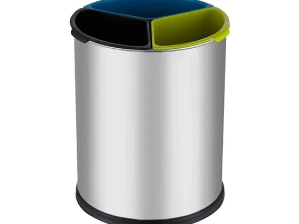 Papirkurv, V-Part, stål mat, stål, 3-rums, 3×3,5 l – (6 stk.)