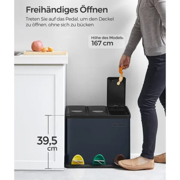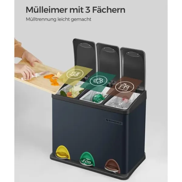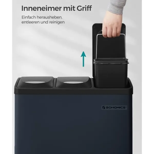 Denna 3-i-1 köksavfallspapperskorg erbjuder ett effektivt system för avfallssortering med en robust och lättstädad design. Dess metallkonstruktion och flera fack gör den idealisk för organiserad återvinning och avfallshantering.
