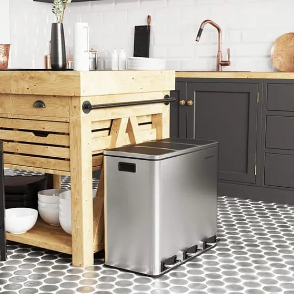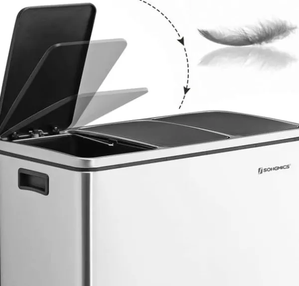 Återvinning kan vara enkelt: Med 3 sektioner sida vid sida kan du sortera din återvinning och sopor med en enkel släng. Allt du behöver göra är att trampa på pedalen för att öppna locket, och du har nu händerna fria att slänga ditt skräp eller återvinning. Utan att behöva röra något med händerna är det mer hygieniskt. De 3 hinkarna inuti har handtag så att de enkelt kan lyftas ut och tömmas.