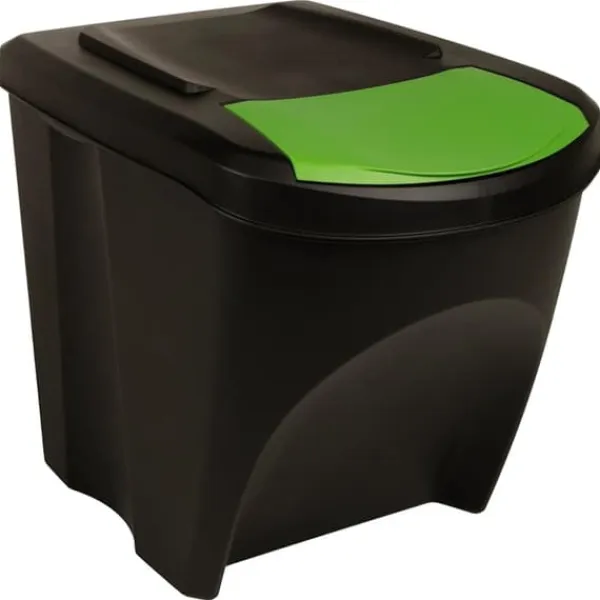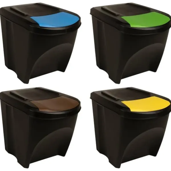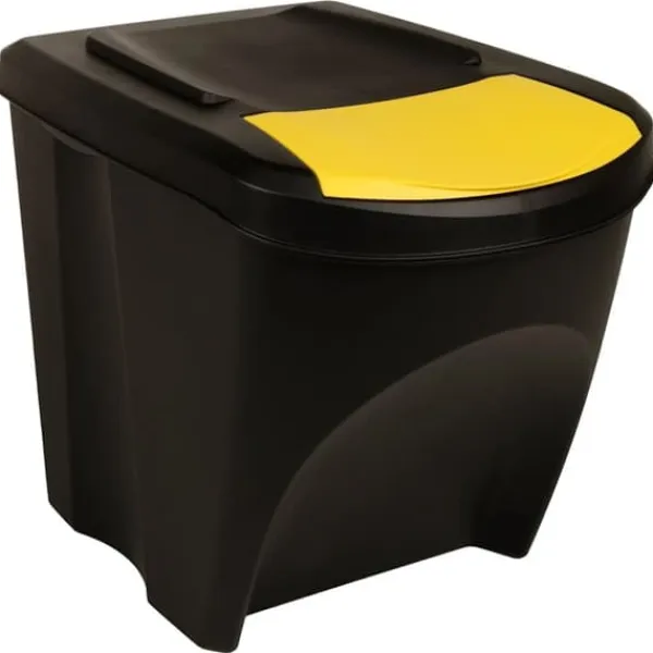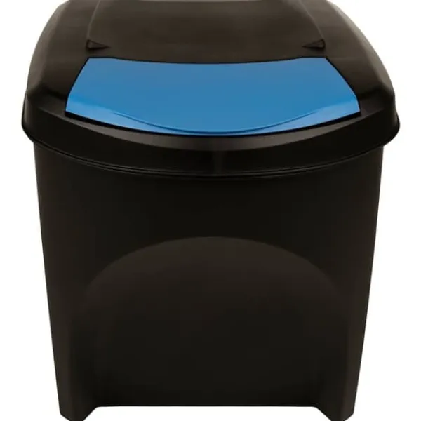 Papperskorgen är tillverkad i polypropen, vilket gör den stark, lätt och enkel att rengöra. Locket på lådan är avtagbart och möjliggör enkel och snabb rengöring. Tack vare etiketterna blir sortering av skräp enkelt. Dessutom sparar de utrymme tack vare dess stapelbara design.