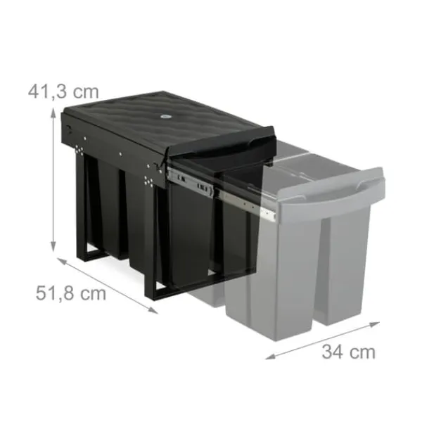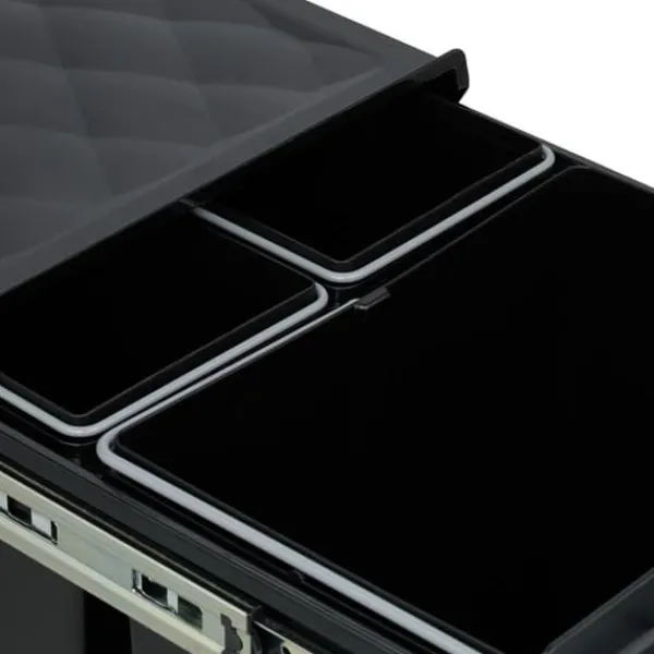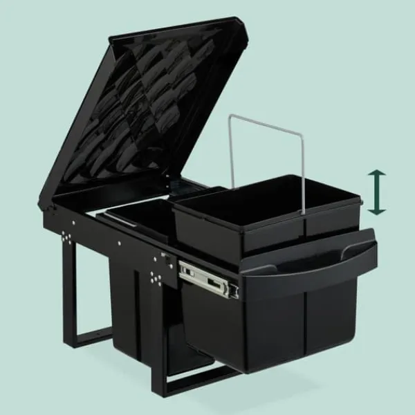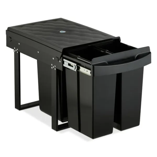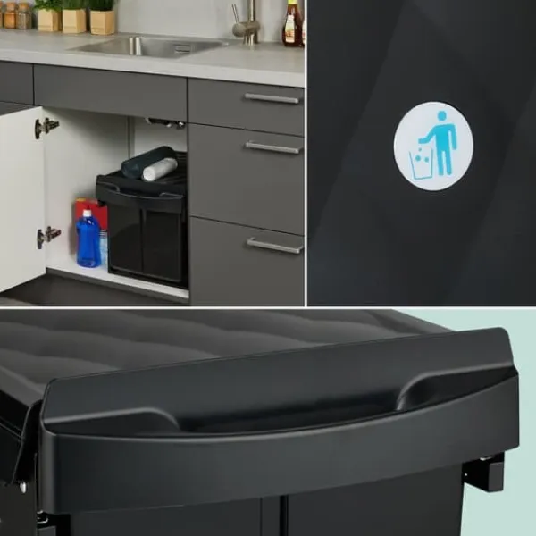 Denna utdragbara avfallsbehållare erbjuder en praktisk lösning för effektiv avfallssortering och platsbesparande installation under din diskbänk. Dess teleskopskena säkerställer smidig, full utdragning för enkel åtkomst, medan det svängbara locket hjälper till att hålla odörer inne och fungerar även som hållare för soppåsar och redskap. Behållaren är enkel att installera och levereras med alla nödvändiga monteringsmaterial samt illustrerade instruktioner.