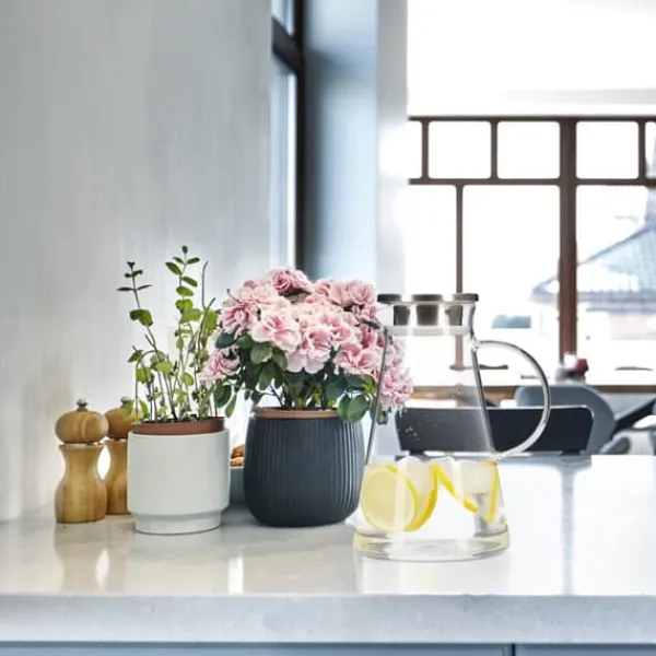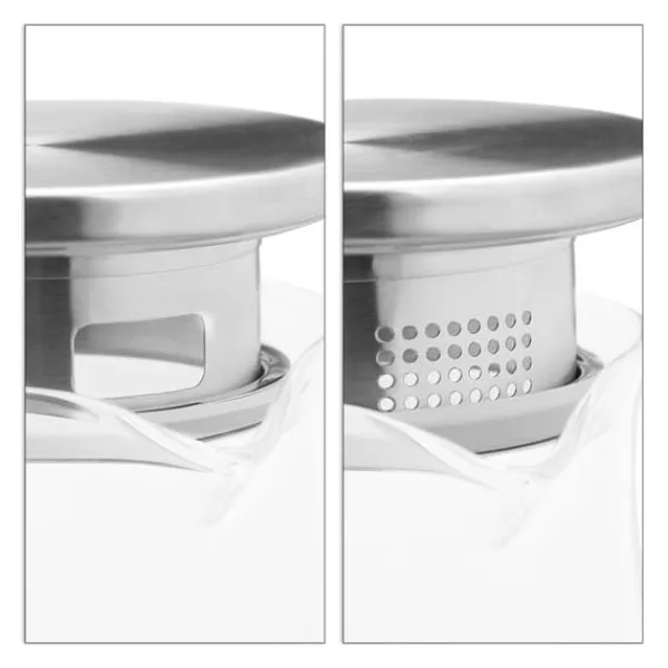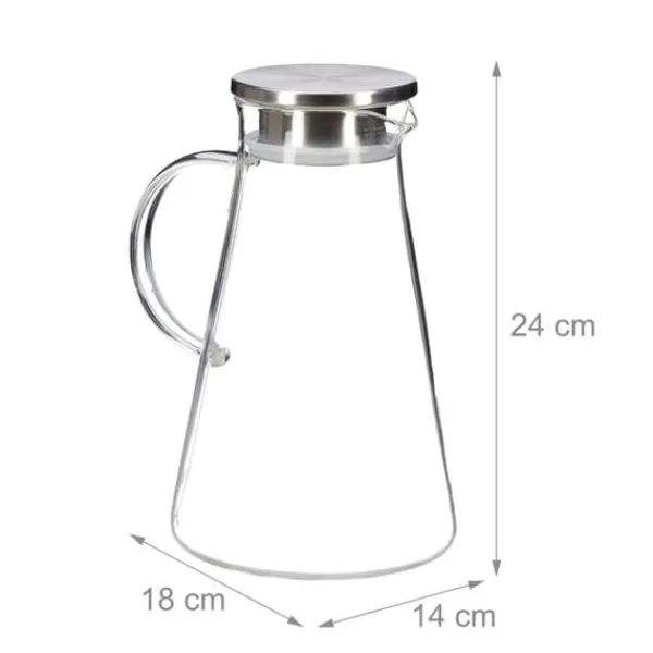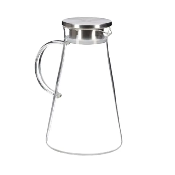 Denna eleganta glaskanna med lock i rostfritt stål är perfekt för att servera vatten, lemonad, iste eller smaksatta drycker, och ger en stilren touch till varje kök eller matsal. Den transparenta designen gör det enkelt att se innehållet, och den tål diskmaskin för smidig rengöring.