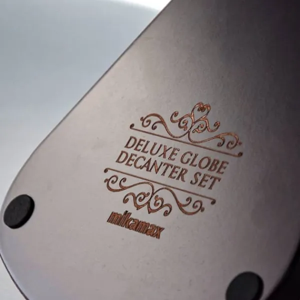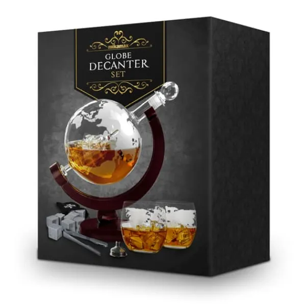 Innehåller: 2 matchande glas, 1 karaff, 1 istång, 1 tratt i rostfritt stål och en påse i sammet med 9 whiskeystenar.