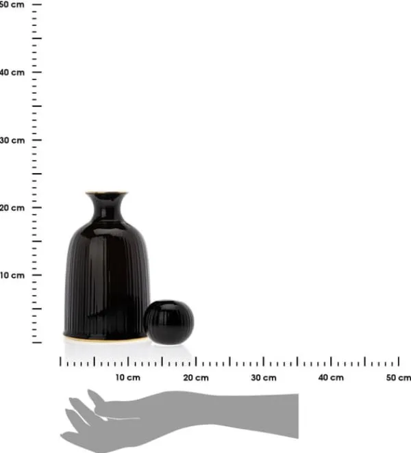En släktträff eller en fest med vänner. I båda fallen behöver vi något att servera drinkar eller andra drycker till gästerna. En snygg keramisk karaff kommer till undsättning. Dess eleganta svarta färg med guldaccenter kommer perfekt att komplettera moderna, glamorösa interiörer. Den räfflade ytan ger ett säkert grepp och förhindrar att kärlet glider. Karaffen finns även i grönt och guld. Mått: höjd: 22 cm