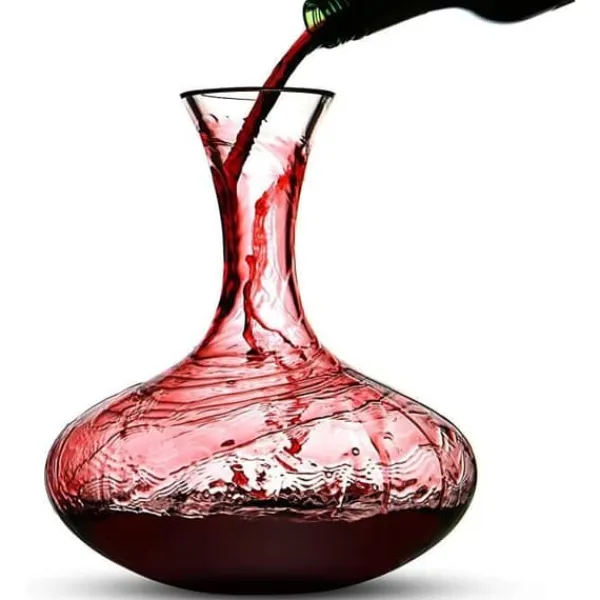 Vinkaraff av glas för syresättning av viner: framhäver färgen på vinet och luftar det försiktigt. Acceleration av vinets mognad för en rik näsa och ett balanserat vin Elegant design, Stabilt grepp om karaffen på det idealiska bordet för