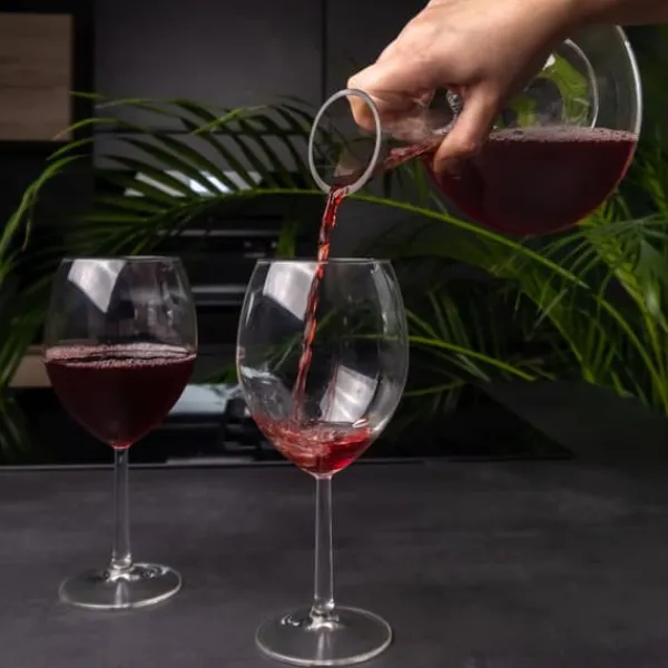 Karaffens breda botten är idealisk för att låta vinet interagera perfekt med luften, vilket gör att vinet kan utveckla sin fulla arom.