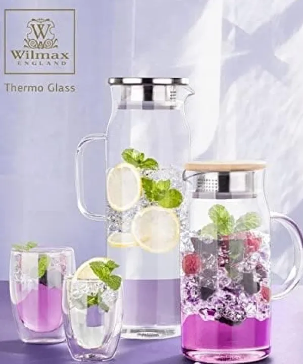 Klarglaset framhäver dryckens färg och den tidlösa designen passar både vardag och fest. 1 liters kapacitet är lagom för vatten, te, juice eller lemonad. Inte för induktionshällar. Undvik snabba temperaturskiftningar för lång hållbarhet.