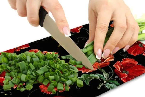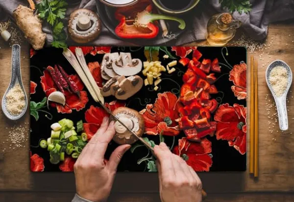 Karottunderlägg-SKÄRBRÄDA I GLAS 52×30 BLOMMOR