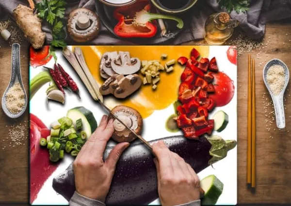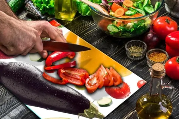 Karottunderlägg-SKÄRBRÄDA I GLAS 52x40 GRÖNSAKER