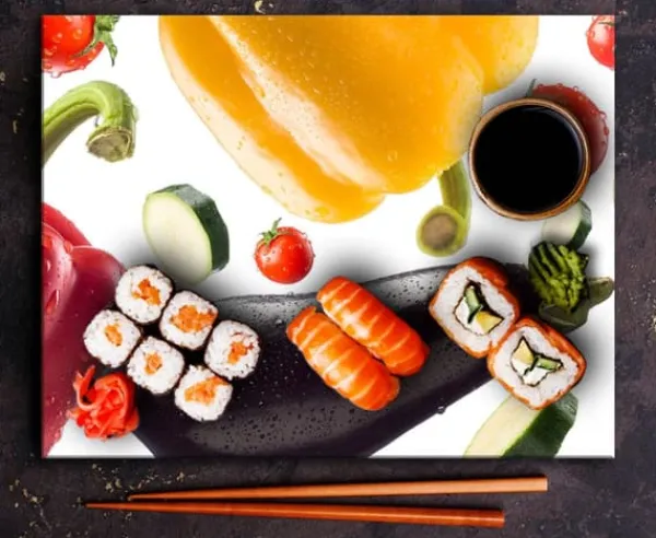 Karottunderlägg-SKÄRBRÄDA I GLAS 52×40 GRÖNSAKER