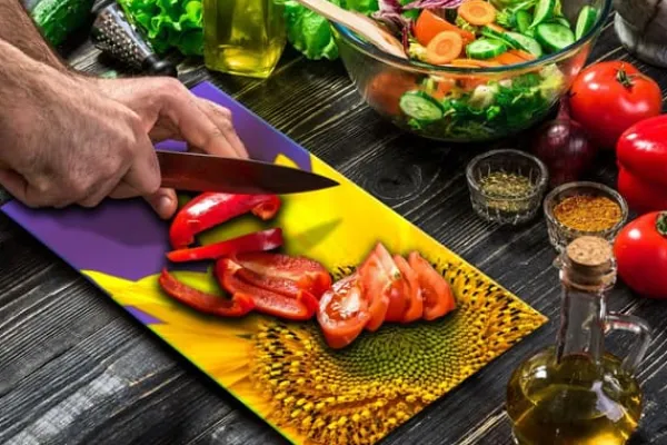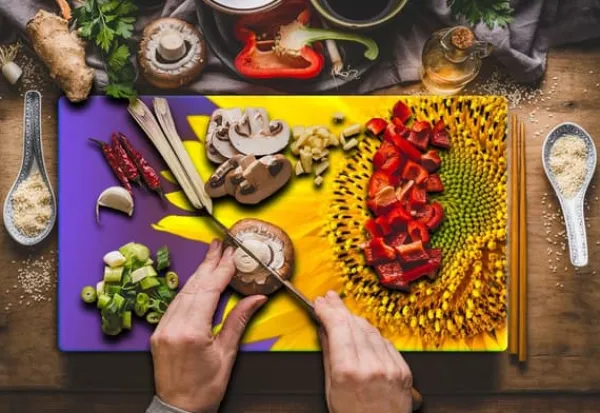Karottunderlägg-SKÄRBRÄDA I GLASPLATTA 52×30 BLOMMA