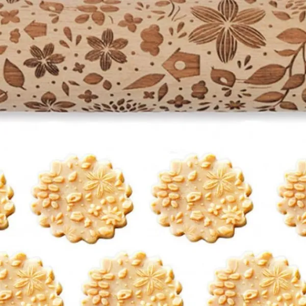 Denna träkavel kommer att ge lättnad åt dina kakor med naturtema. Tack vare sin gravering trycks mönstret perfekt i degen och finns kvar efter tillagning. Bruksanvisning: när du har en degboll, kavla ut den med händerna och avsluta sedan jobbet med denna rulle.