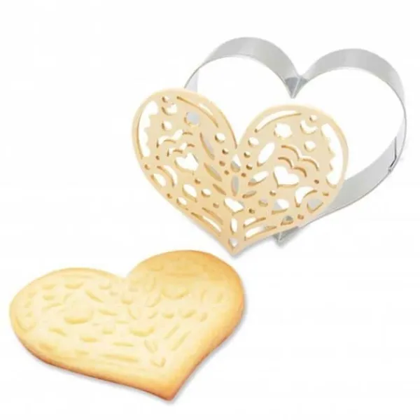 Detta set med pepparkaksform och stämplar samt två färgade chokladpennor blir de perfekta tillbehören för att skapa och dekorera kakor, småkakor eller alla andra bakverk i hjärtform! Den exakta designen på pepparkaksformen och stämplarna ger din kaka en hjärtform och präglar detaljerna av hjärtat i relief, rita eller skriv sedan på med chokladpennorna. Perfekt att ge som present till en bakentusiast eller för att imponera på dina vänner och familj vid desserttillfället! Kitet innehåller en hjärtformad pepparkaksform i rostfritt stål och en hjärtstämplare i naturligt trä samt två ätbara chokladpennor. Tvätta och torka pepparkaksformen och stämplarna före första användning och mellan varje användning. Dessa två tillbehör är återanvändbara: tvättbara och rostfria för en originell och ekologisk bakning! Stämplaren i trä tål inte ugn, diskmaskin eller kontakt med vatten. För att rengöra, använd en lätt fuktig svamp. Dessa två tillbehör kan användas separat. Vrid inte, detta kit är inte en leksak, håll det utom räckhåll för barn. Sätt inte spetsen i direkt kontakt med eld eller på en elektrisk platta. Använd inga vassa verktyg. Mått på pepparkaksform: 6,4 x 7,2 x 2,5 cm. Mått på stämplare: 6,2 x 6,6 x 0,2 cm. Chokladpennorna på 25g är skapade av gelésocker och livsmedelsfärgämnen som gör dem 100% ätbara. Användningen av pennan är mycket enkel: koka vatten i en kastrull, häll det i en skål och lägg i pennan i 2 minuter med korken på. För att använda den, öppna korken och tryck på pennan för att göra dina dekorationer, ultrsnabb torkning! Efter varje användning kan du sätta på korken igen och förvara den. Våra chokladpennor finns även i andra färger.
