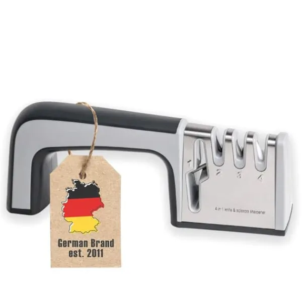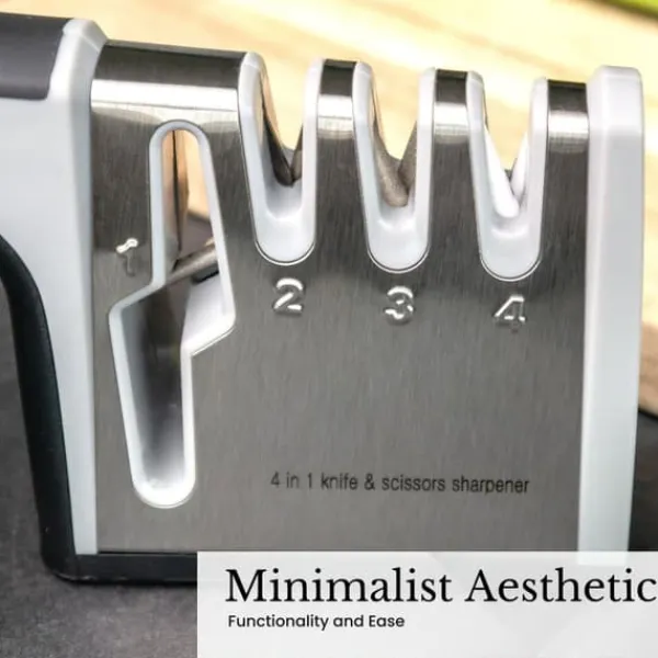 4-i-1 knivslip i rostfritt stål för saxar och köksknivar – lämplig för stål och keramik för grov- och finslipning med halkfri undersida