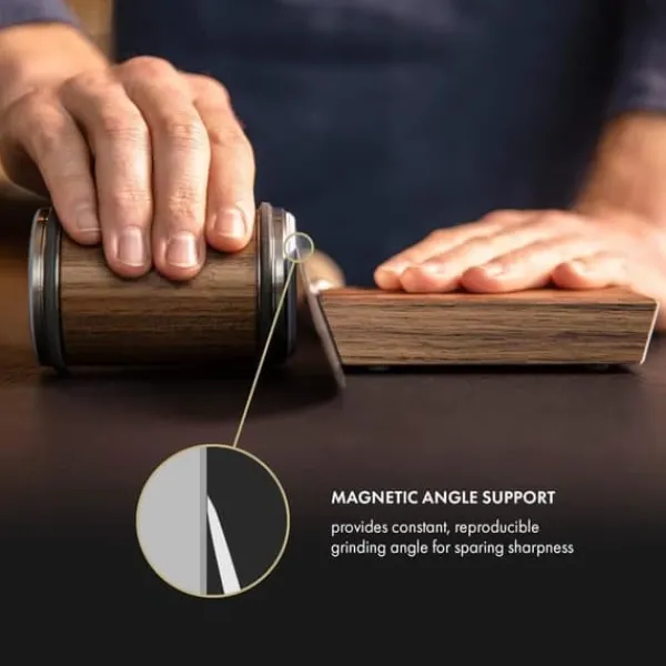 Den kompakta designen gör den lätt att förvara och ta med, hemma i köket eller på resan. Förvaras enkelt i lådor eller skåp utan att ta upp plats, och är alltid redo att hålla knivarna vassa.