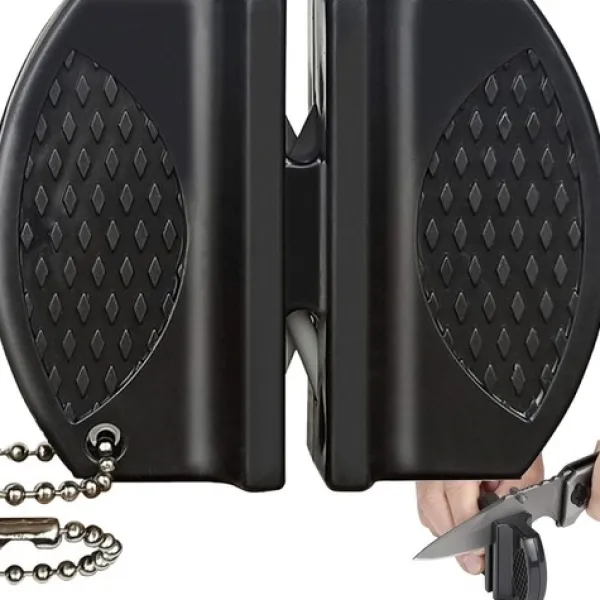 Slipa dina knivar snabbt och smidigt med denna kompakta tvåfasiga knivslipare. Knivsliparen är utrustad med en praktisk kedja för enkel transport och har två slipfaser – en för grov slipning och en för finpolering. Med en enkel rörelse ger den dina knivar optimal skärpa, så att du alltid är redo att hantera alla utmaningar i köket eller vildmarken.