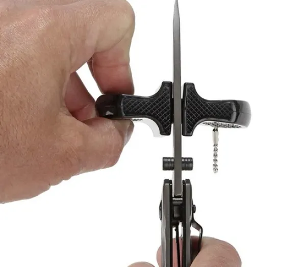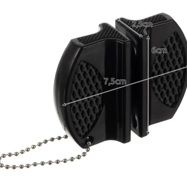 Dess kompakta design gör den lätt att bära med sig, och det ergonomiska handtaget tillsammans med halkfria fötter ger ett säkert grepp vid användning. Tillverkad av slitstarka material som PP, metall, keramik och gummi, är den både hållbar och pålitlig – en oumbärlig hjälp för att hålla knivarna sylvassa, var du än befinner dig.