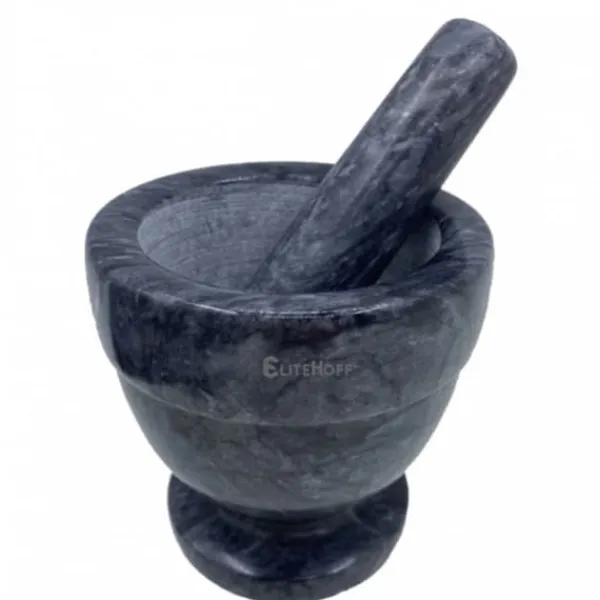Ett kärl med en mortelstöt för manuell malning och malning av olika ämnen. Du kan krossa en liten mängd av ämnet genom att gnugga skålens lite grova yta med en mortelstöt. Skålarna och mortelstöten är gjorda av granit. I den presenterade murbruket får du ett exakt pulveriserat ämne utan klumpar Produktegenskaper: – Handgjorda av ett block av hård granit – Mycket hållbart, det kommer inte att slitas eller gå sönder, oavsett slipkraft – Tack vare den polerade finishen. på utsidan av murbruket och manipuleringen, kommer det att vara en estetisk dekoration av alla kök- Vispstorlek: 12 cm- Mortelstorlek: Ø10 x 10 cm- Material: naturgranit