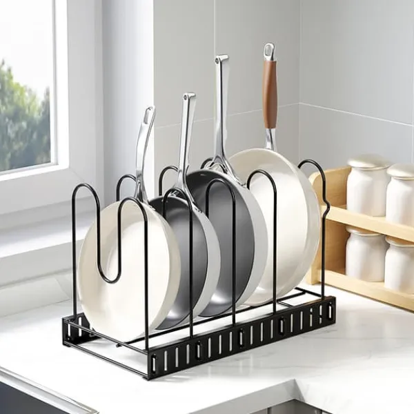 LIVIT Justerbar Grytorganiserare är den ultimata lösningen för att organisera dina köksredskap effektivt. Med sin mångsidiga design kan detta ställ användas både vertikalt och horisontellt, vilket gör det till en perfekt passform för alla kökslayouter. Oavsett om du vill spara bänkutrymme eller maximera skåpförvaring, håller denna hållbara organisatör dina grytor och lock prydligt ordnade och lättillgängliga.
