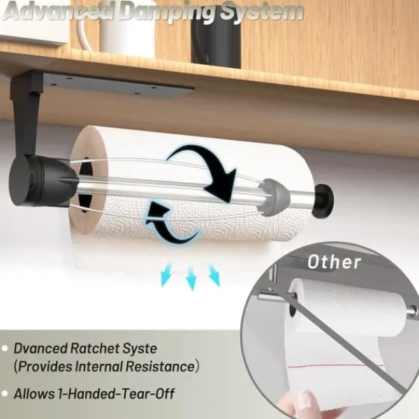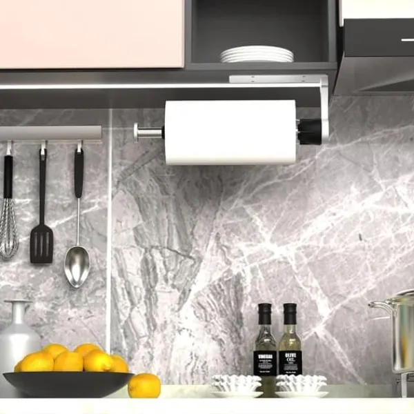Köksorganiserare-Lollanda Hushållspappershållare utan borrning med dämpningseffekt, självhäftande eller borrade för kök