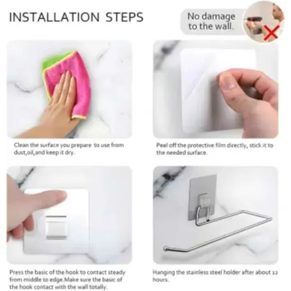 Denna hushållspappershållare är tillverkad av högkvalitativt rostfritt stål och är designad för att hålla länge. Den är enkel att installera – bara ta bort skyddspappret och tryck fast den på din köksvägg eller under ett skåp. Inga verktyg behövs!