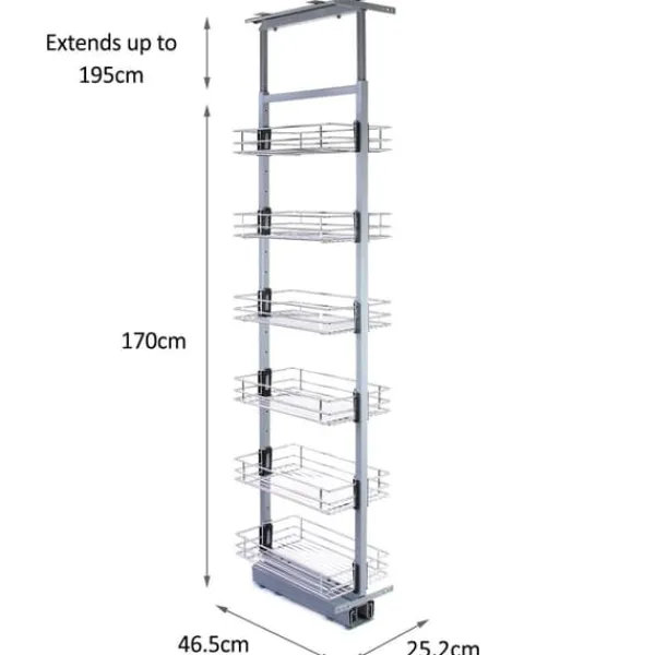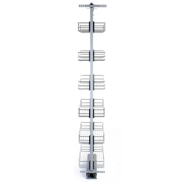 Kommer med 6 stycken korgar som kan hålla upp till 20 kg vardera. Det finns massvis med plats för torrvaror och dylikt. Utdragnings-mekanismen gör att du obehindrat kan dra ut skafferiet och kan sedan stänga mjukt när du hittat det du letat efter.