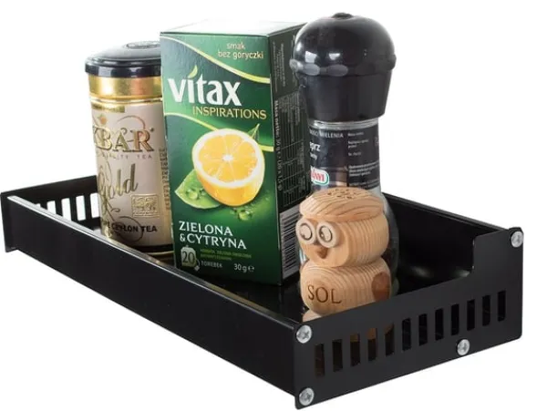 Denna kökshylla kombinerar funktionalitet och stil i ett smart förvaringsalternativ. Med sin stabila konstruktion i pulverlackerad aluminium erbjuder den en slitstark lösning som passar lika bra i köket som i badrum, sovrum eller arbetsrum. Den svarta ytan ger ett modernt uttryck och smälter fint in i både industriella och mer klassiska inredningsstilar.