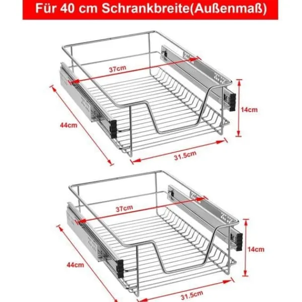 Teleskopisk lådmaterial: förkromad metall, lämplig för 40 cm skåp och lådor. Eliminera röran med unika, platsbesparande utdragbara hyllor med låg profil för enkel åtkomst