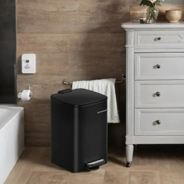 Kökssoptunna, 30 liters soptunna, pedalbehållare, stål, med innerhink, mjukstängning, öppningsfunktion, bläcksvart Specifikationer: – Mått: 34,1 x 28,6 x 54,5 cm (L x B x H) – Vikt: 3,1 kg – Max statisk lastkapacitet: – Material: Stål, PP-plast – Ytbehandling: Svart