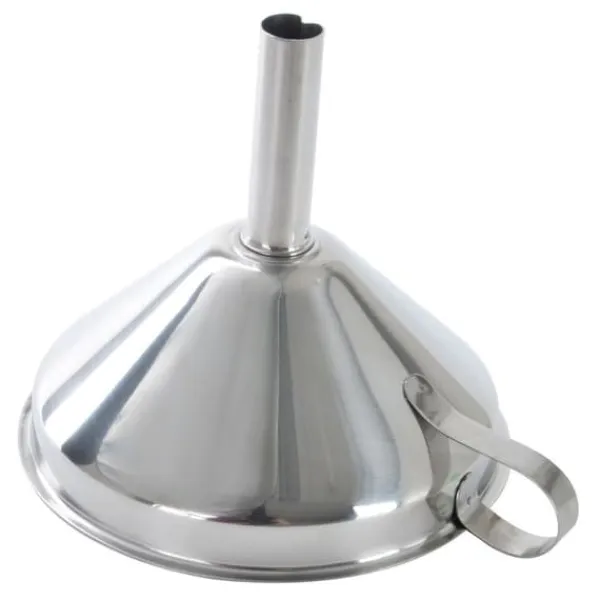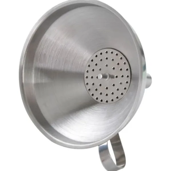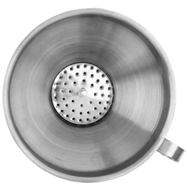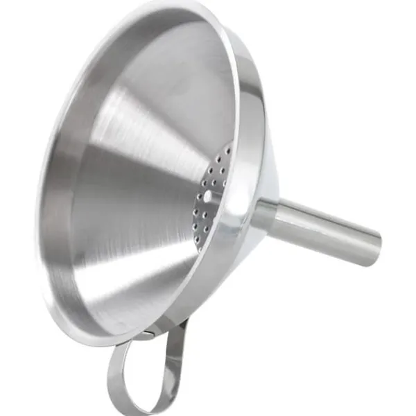 Kökstratt med sil och bekvämt handtag. Den har universell användning i köket. Solid tillverkad, men ändå lätt och bekväm att använda. Perfekt för att fylla flaskor. Tratten utrustad med sil gör att du kan filtrera den upphällda drycken ordentligt. Tillverkad av hälsosäkra och livsmedelsneutrala material. Originalprodukt från det tjeckiska märket Orion. Tillverkad i enlighet med europeiska standarder.