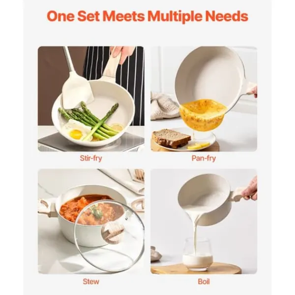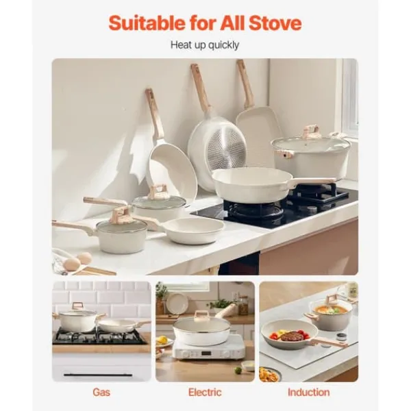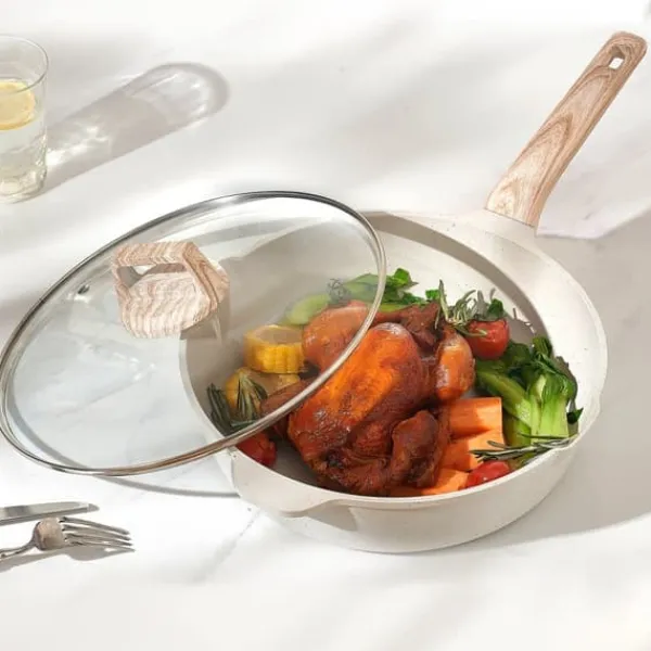 - Premiummaterial: Tillverkad med en non-stick-beläggning av Maifan-sten för enkel matlagning och rengöring. Tål temperaturer upp till 380°C och är fri från bly, kadmium och PFOA.