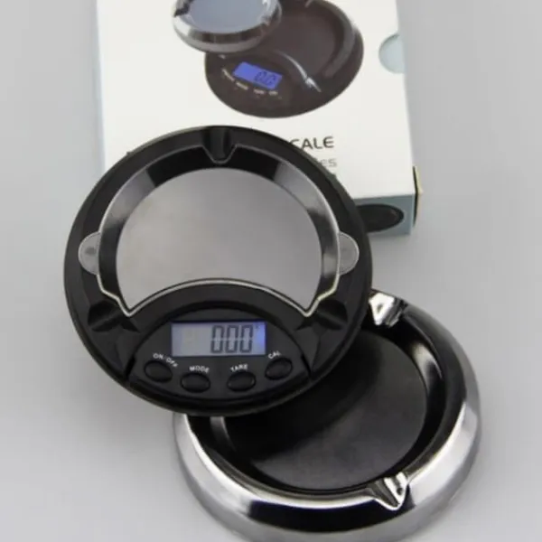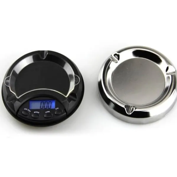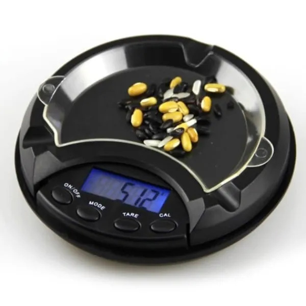 Liten kompakt exakt digital våg som har samma utseende som ett askfat, utmärkt för att väga guld mm