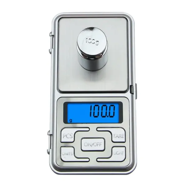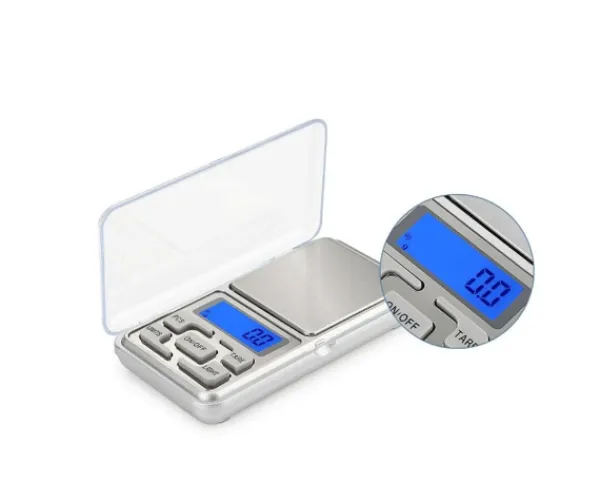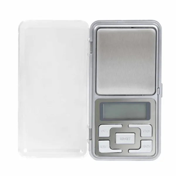 Digital våg i miniformat, med en kapacitet på 200 g med en noggrannhet på 0,01 g. Perfekt för små föremål. Fickvågen har ett skyddande lock och kan smidigt tas med.
