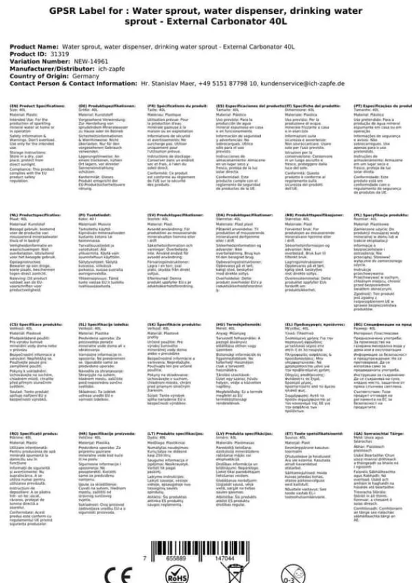 Kolsyremaskin, Vattendispenser, Bubbelvatten maskin – Externer Karbonator 40L Produktfunktioner: •Kolsyraren kan producera 40 liter sodavatten per timme. •Prisvärd lösning för restauranger och andra anläggningar som erbjuder drycker och vill utöka sin befintliga bar med kolsyrat vatten av hög kvalitet. •Effekt: 368W •Ström: 1,6A •Spänning: 220-240V / 50Hz •Dryckanslutning – snabbkoppling 9,5 mm 3/8″ •CO2-anslutning – snabbkoppling 8 mm 5/16″ •Utgång – Soda 3/8″ •Mått (BxDxH) – 166x344x370 mm •Vikt – 10,5 kg Denna kolsyremaskin är det perfekta tillskottet till ditt hushåll eller företag. Med sin externa kolsyra kan du enkelt producera kolsyrat mineralvatten och rädda dig själv från att bära tunga vattenflaskor. Kolsyraren kan producera 40 liter sodavatten per timme och är enkel att använda. Med denna kolsyremaskin är det en barnlek att producera glittrande mineralvatten. Denna mousserande kolsyremaskin, vattendispenser för dricksvatten erbjuder också en prisvärd lösning för restauranger och andra anläggningar som vill utöka sin befintliga bar med kolsyrat vatten av hög kvalitet. Denna kolsyremaskin för dricksvatten kan enkelt kopplas till en kylare och en bränslepump och är ett platsbesparande alternativ till tunga och skrymmande vattenflaskor. Med den externa kolsyraren, vattenkokaren, kolsyraren för dricksvatten är du alltid redo att tappa kolsyrat mineralvatten bekvämt och enkelt!