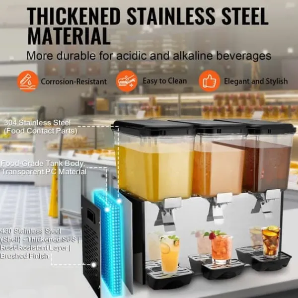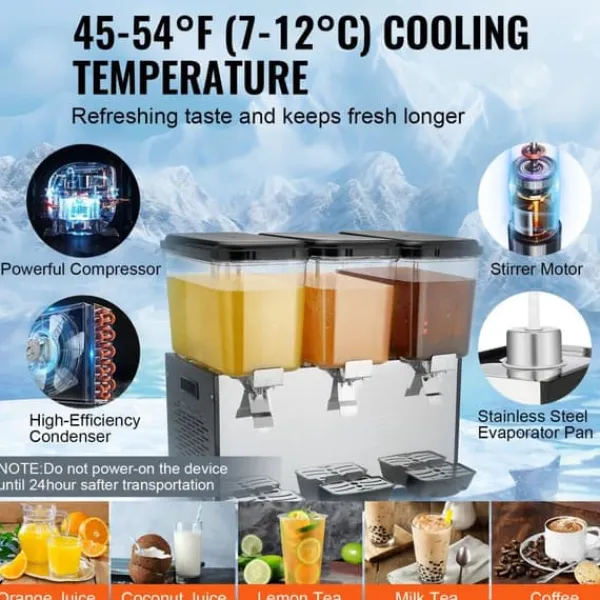 Denna kommersiella dryckesautomat har en imponerande tankkapacitet på 18 liter och erbjuder en pålitlig och effektiv kylupplevelse för en mängd olika drycker. Utrustad med praktiska funktioner som säkerställer enkel användning och en god dryckesblandning.
