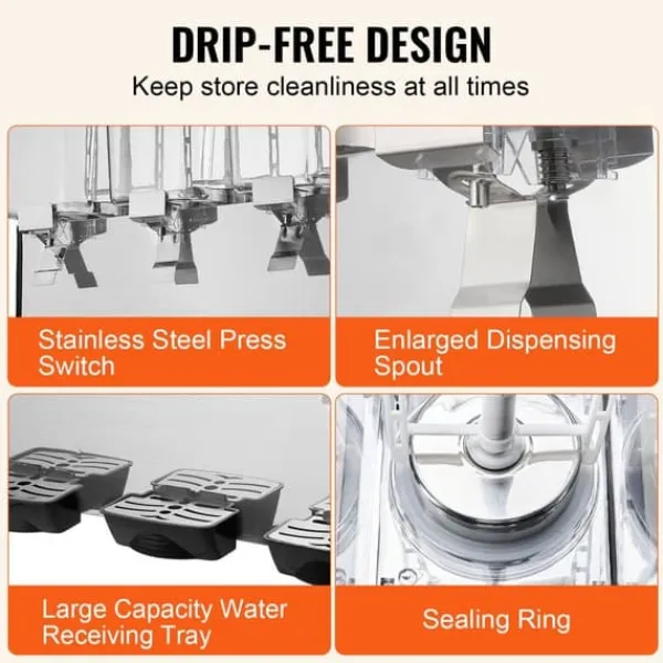 Effektiv temperaturkontroll: Kompressor- och kondensorkomponenterna säkerställer snabb kylning med hjälp av den rostfria, 304-förångaren och omrörningsstaven för jämn dryckestemperatur inom ett bekvämt intervall.