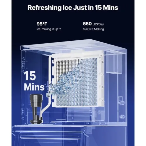 Snabb istillverkning: Med 160 isbrickor och en kraftfull kompressor kan denna ismaskin producera is på bara 12–15 minuter.