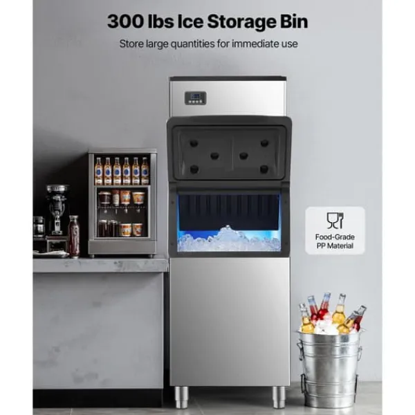 Den här kommersiella ismaskinen är idealisk för stor isproduktion med en kapacitet på 227 kg is per 24 timmar. Den har en imponerande isolering och kan lagra upp till 147 kg is för en kontinuerlig tillförsel.